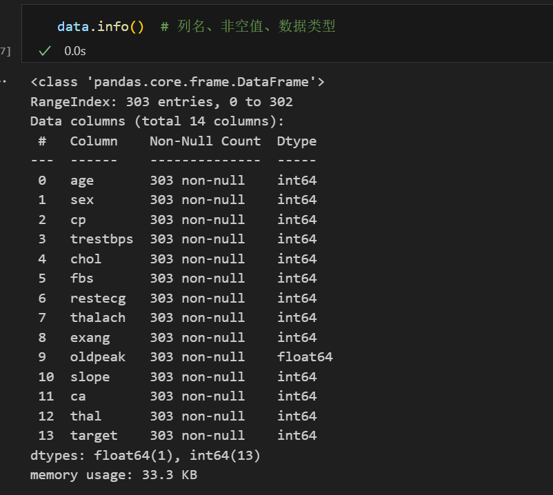 3.查看数据类型、缺失值