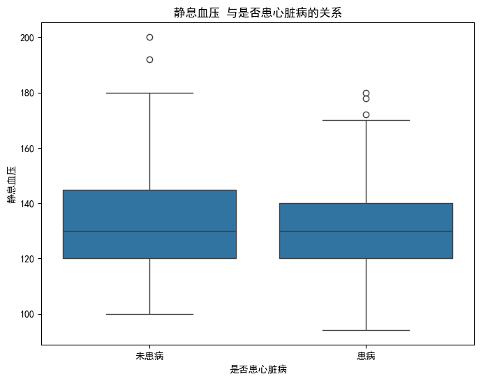 ax2.set_title('静息血压 箱线图') # 子图2标题