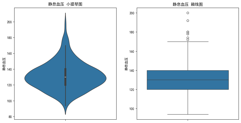 ax1.set_title('静息血压 小提琴图') # 子图1标题