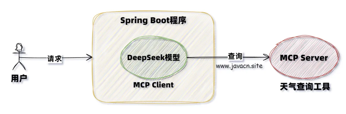 - MCP Server:MCP 服务提供方,提供天气查询功能。
