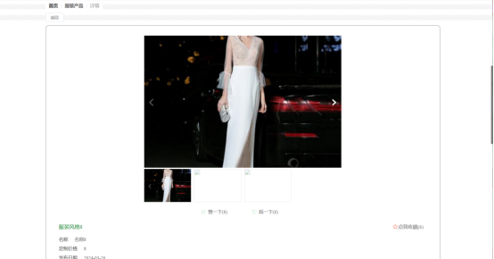 服装产品:在服装产品页面可以查看服装产品详细信息,并进行收藏、点赞操作;服装产品页面如图5-5所示: