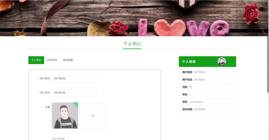 个人中心:在个人中心页面可以对修改密码、我的收藏进行详细操作;如图5-4所示: