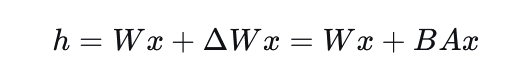 它将权重更新 $ΔW$ 分解为两个更小矩阵的乘积: