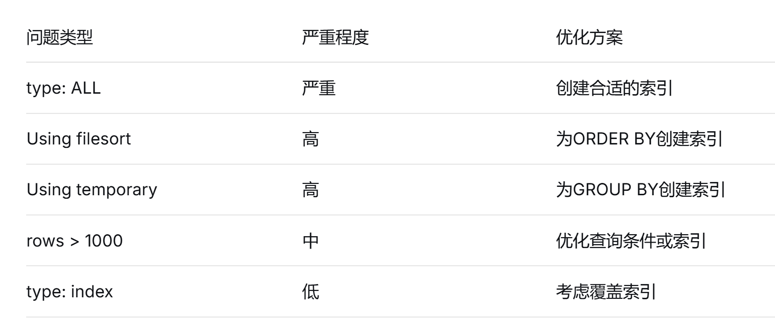 -- 推荐 SELECT u.username, COUNT(o.id) AS order_count FROM users u LEFT JOIN orders o ON u.id = o.user_id WHERE u.country = 'CN' AND u.created_at > '2023-01-01' GROUP BY u.username HAVING order_count > 5 ORDER BY order_count DESC; -