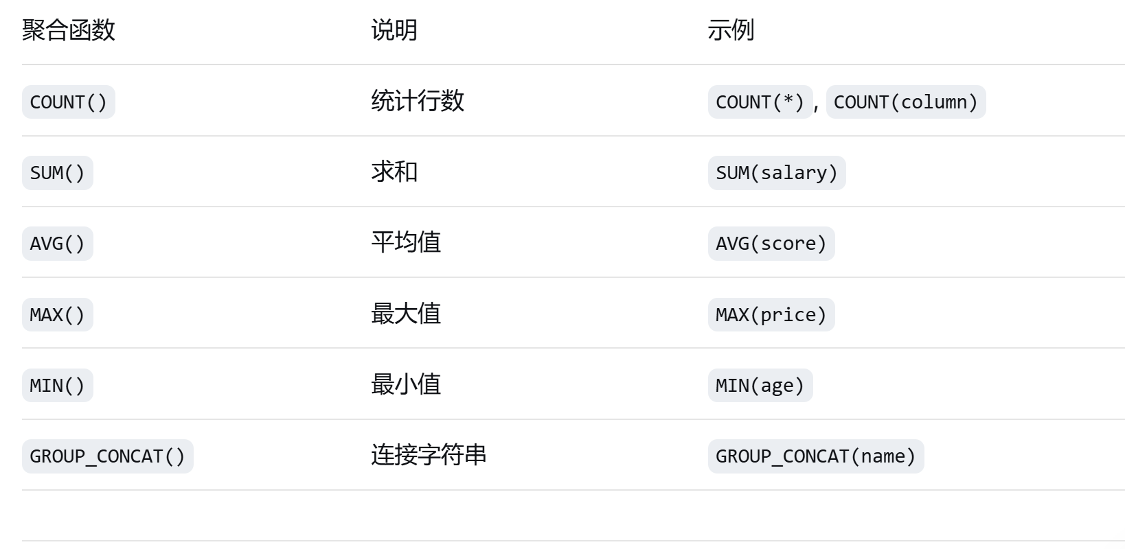 #(井号):MySQL 特有的单行注释方式,但不属于 SQL 标准,为保持通用性,推荐优先使用--。