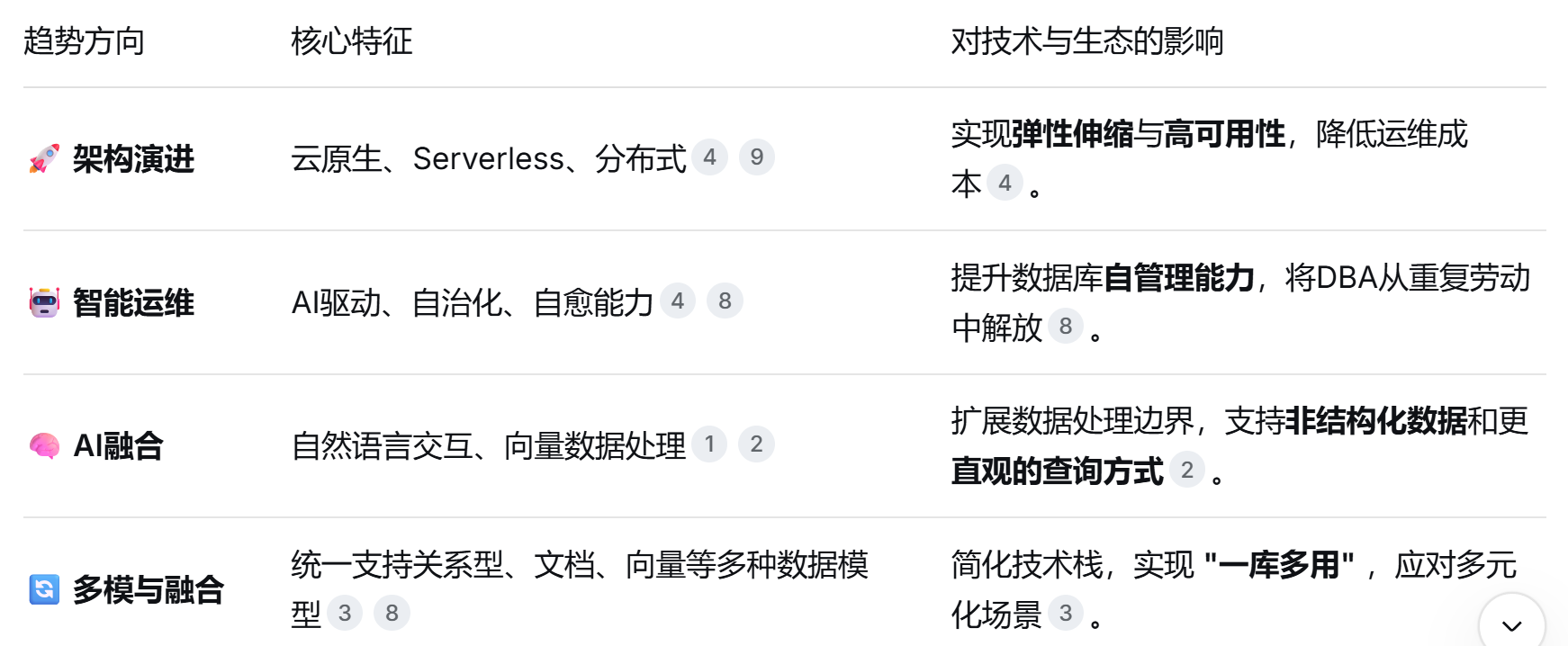 * **形态演进**:**Serverless数据库**是这一趋势的深化,它让开发者无需关心底层服务器的配置与数量,真正实现按需使用和付费。
