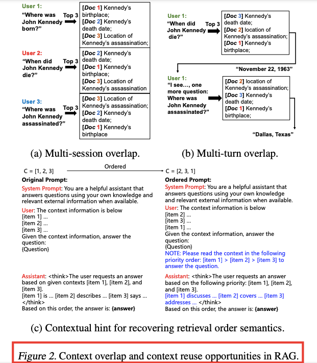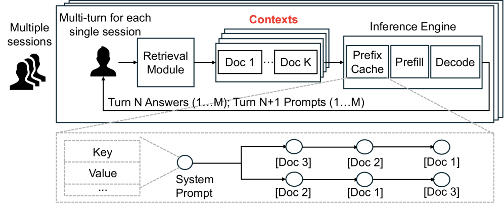 图1 典型 RAG 系统:检索与生成交替,多会话/多轮都存在大量重复文档