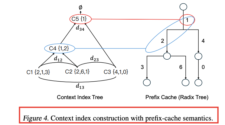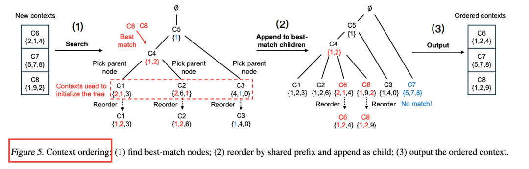 - 对新请求查询索引,把文档排成与缓存前缀最大重叠的顺序