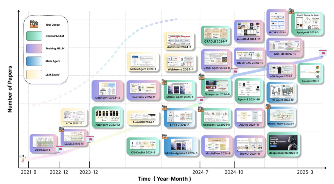 - A Survey on (M)LLM-Based GUI Agents(https://arxiv.org/pdf/2504.13865)
