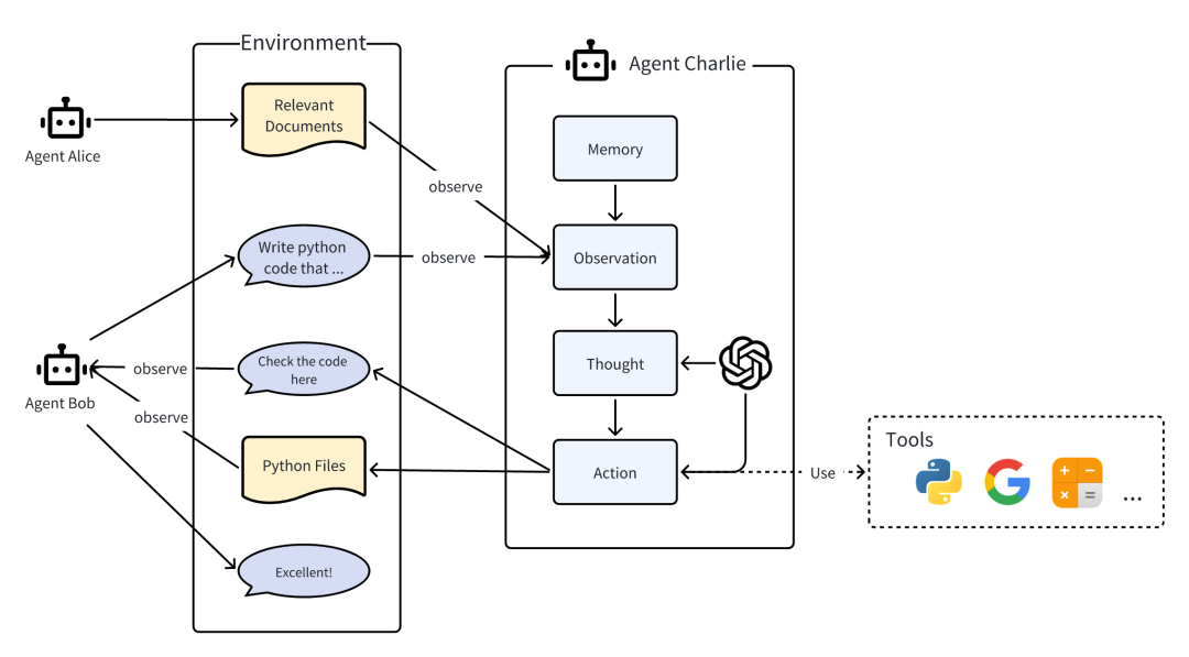 - 查询矢量数据库、执行 Python 脚本、调用 API 等,利用外部工具和资源来提升自己的决策和执行能力。