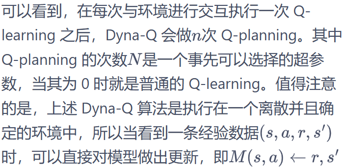 本章即将介绍的 Dyna-Q 算法也是非常基础的基于模型的强化学习算法,不过它的环境模型是通过采样数据估计得到的。