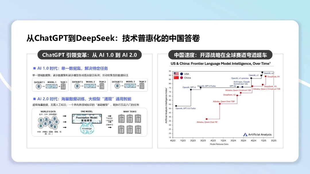 曾经,AI 1.0 时代依赖单一数据集解决特定任务,数据标注成本高昂且应用场景有限。但随着技术的进步,AI 2.0 时代已然到来。如今,海量数据训练催生了大模型的“涌现”,这些模型能够处理多种任务,展现出通用智能的潜力。从文本生成到多模态应用,大模型正逐步成为未来智能技术的核心。
