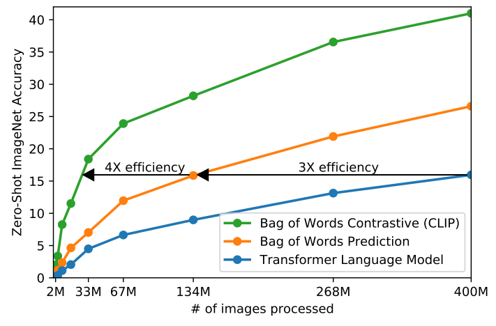 CLIP没有预测exact caption(计算昂贵),而是学习: