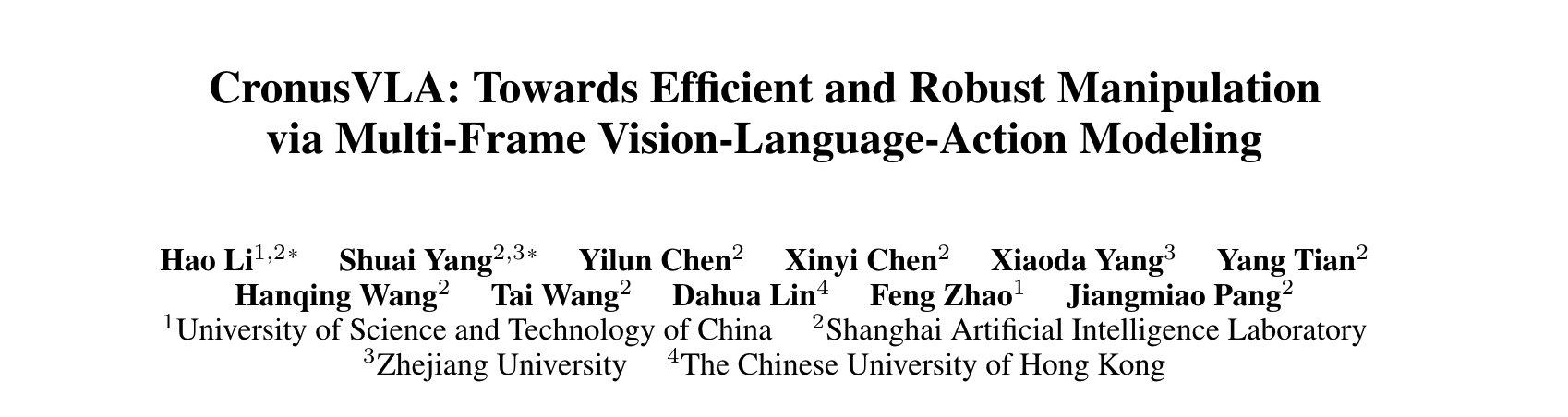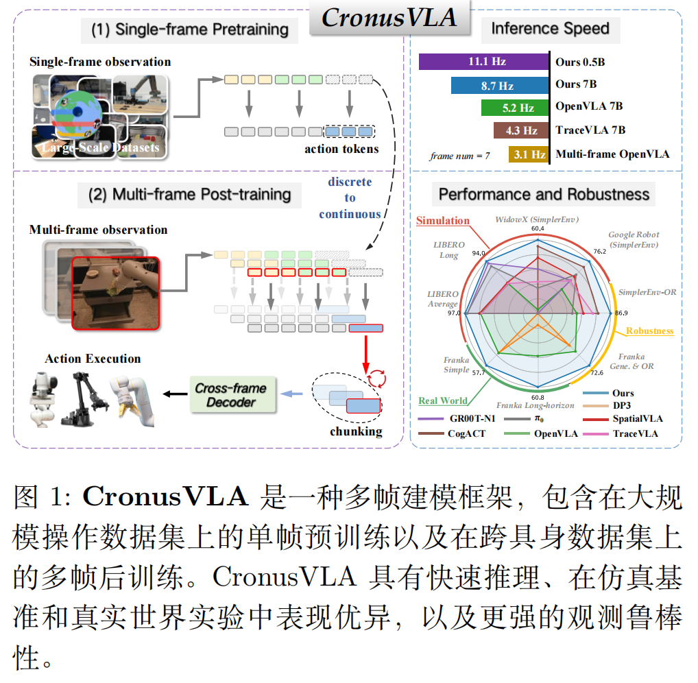 - 论文题目:CronusVLA: Towards Efficient and Robust Manipulation via Multi-Frame Vision-Language-Action Modeling
