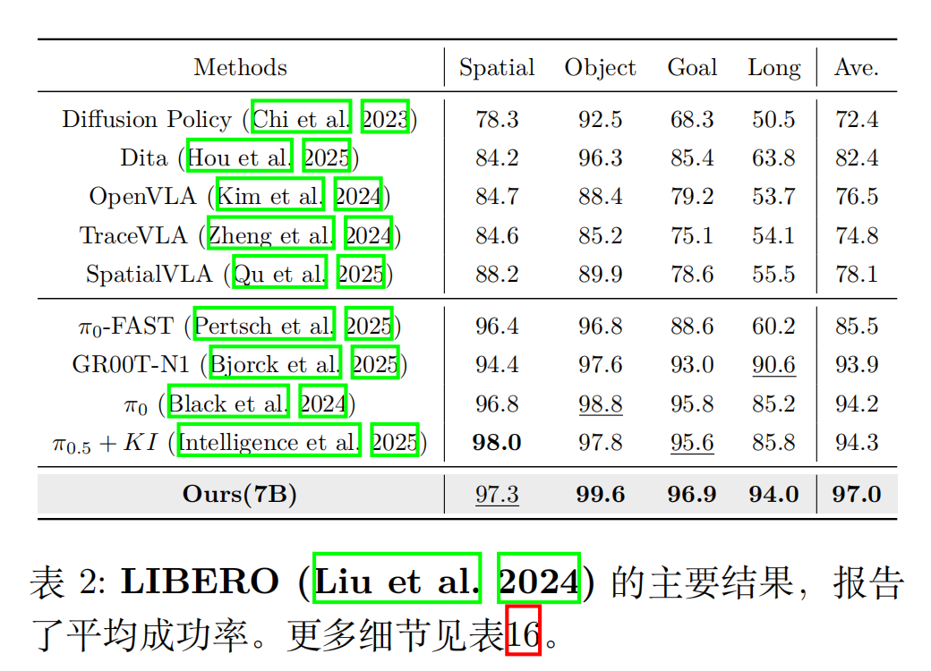 LIBERO 包含 4 类任务(Spatial/Object/Goal/Long),其中 “Long 任务” 需多步连续操作(如 “开抽屉→放物体→关抽屉”),最考验时序建模能力。
