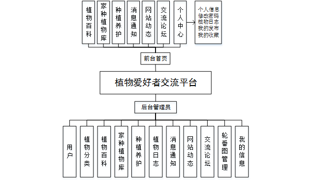 功能需求分析是系统设计的前提,它要求开发者和用户定义开发什么样的体系和系统需要什么样的功能。本文主要介绍了植物爱好者交流平台。该系统为用户提供了更安全、更高效、更便捷的服务途径。本系统有二个角色:管理员和用户,要求具备以下功能: