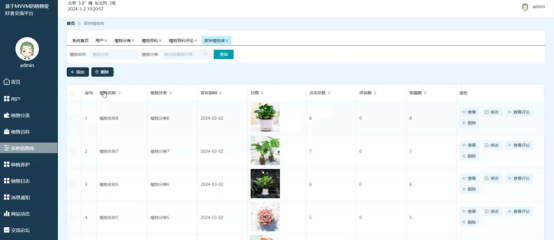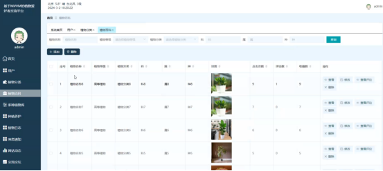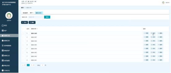 (2)管理员通过后台管理界面,实现对用户、植物分类、植物百科、家种植物库、种植养护、植物日志、消息通知、网站动态、交流论坛、轮番图管理、我的信息等功能的操作;