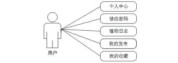 (2)用户关键功能包含个人中心、修改密码、植物日志、我的发布、我的收藏等进行管理。用户用例如下: