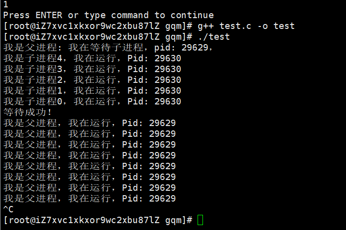 printf("我是父进程: 我在等待子进程,pid: %d,\n", getpid());