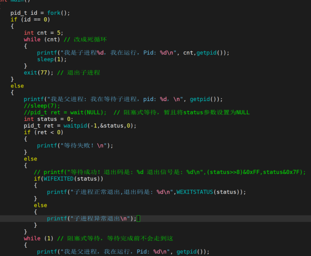如果 pid_t < 0:等待失败。