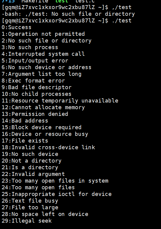 首先,失败的非零值是可以自定义的,我们可以看看系统对于不同数字默认的 错误码 是什么含义。C 语言当中有个的 string.h 中有一个 strerror 接口,是最经典的、将错误码表述打印出来的接口,我们可以在写个代码去把这些错误码给打印出来:(这里有133个,往后面打都是不知道的错误了)