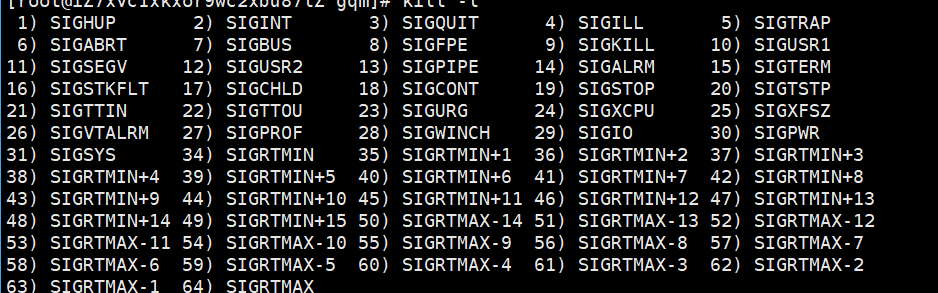 当进程收到信号时,就代表进程异常了。进程程出,如果是异常退出,是因为该进程收到了特定的信号。其实除了 9 号信号还有很多信号,输入 kill -l 就可以查看这些: