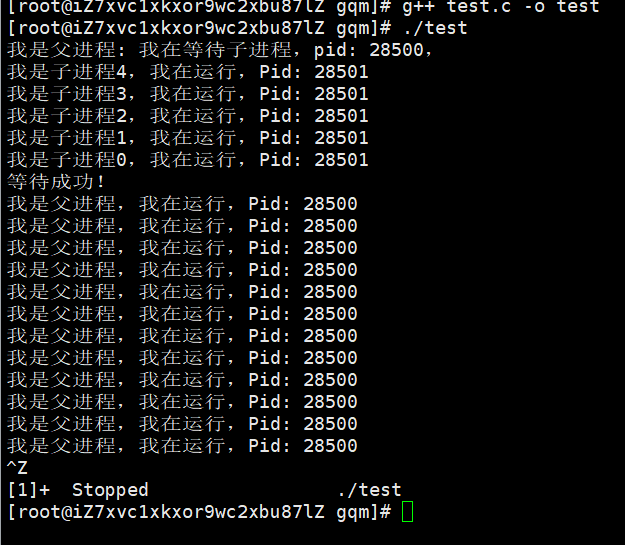 成功验证了父进程等待子进程。通过wait()的方案,我们可以解决回收子进程的 Z僵尸态,让子进程进入X死亡态