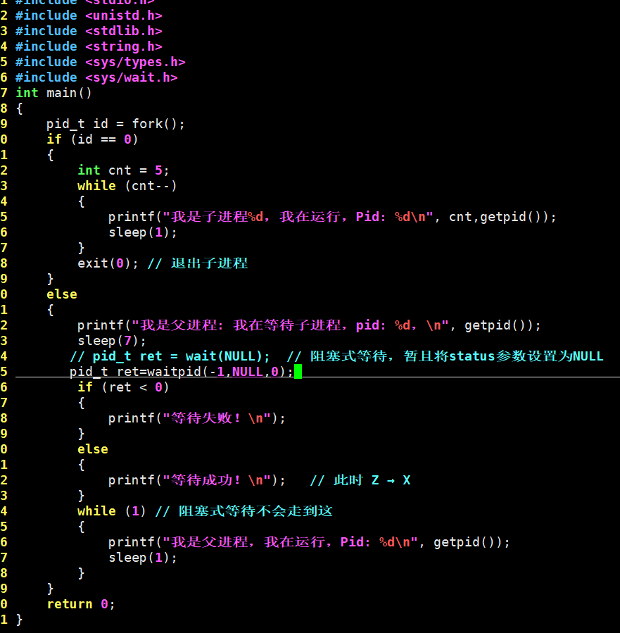 如果pid_t >0:等待子进程成功,返回值就是子进程的pid;