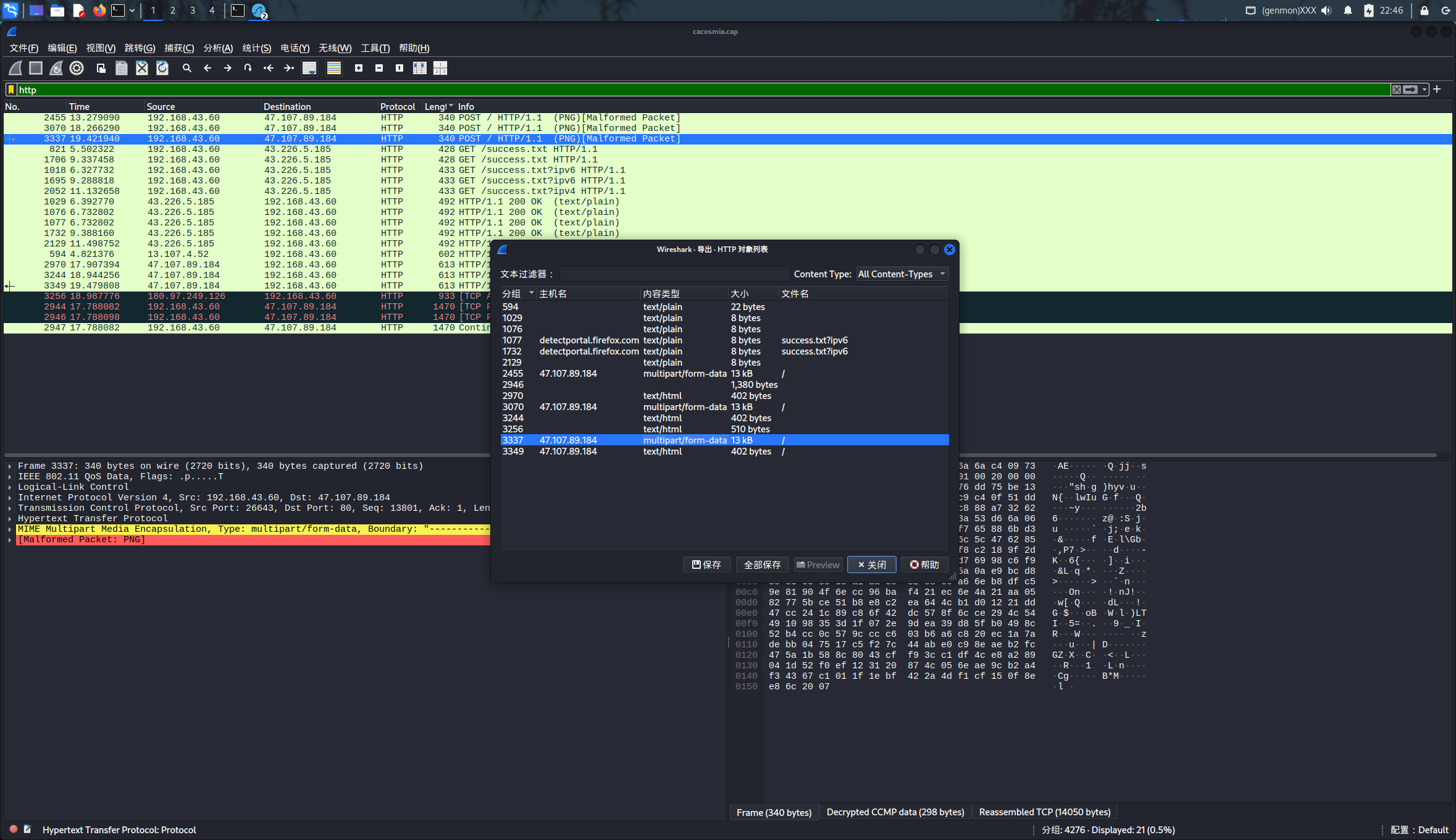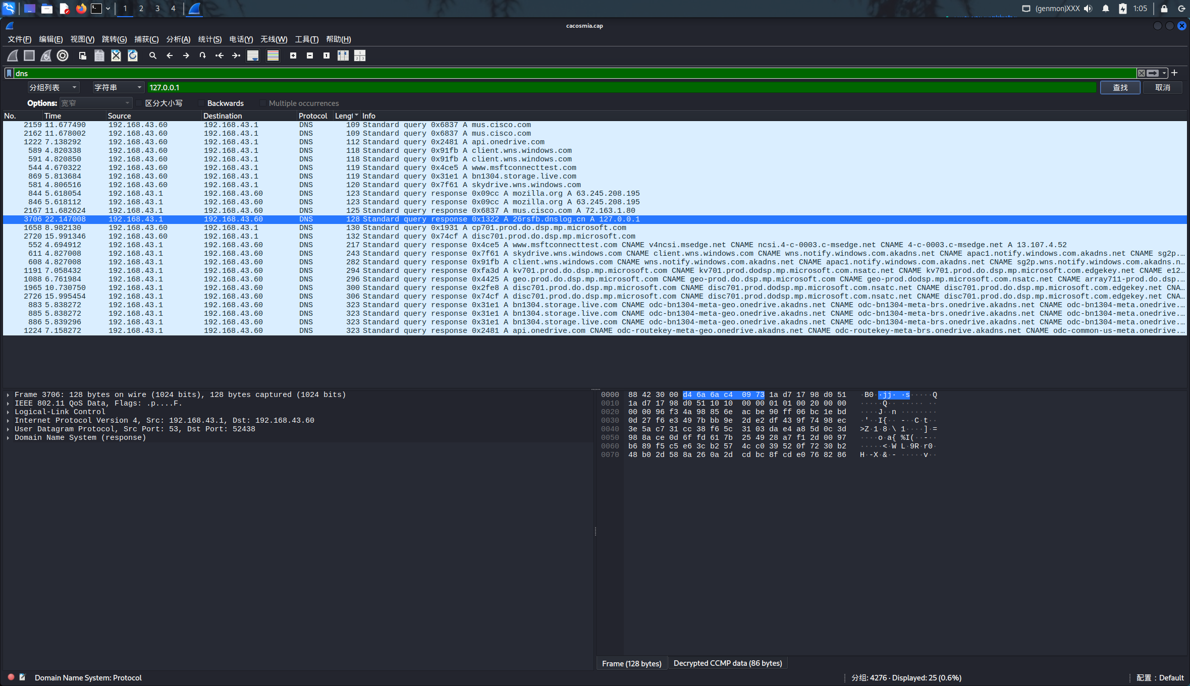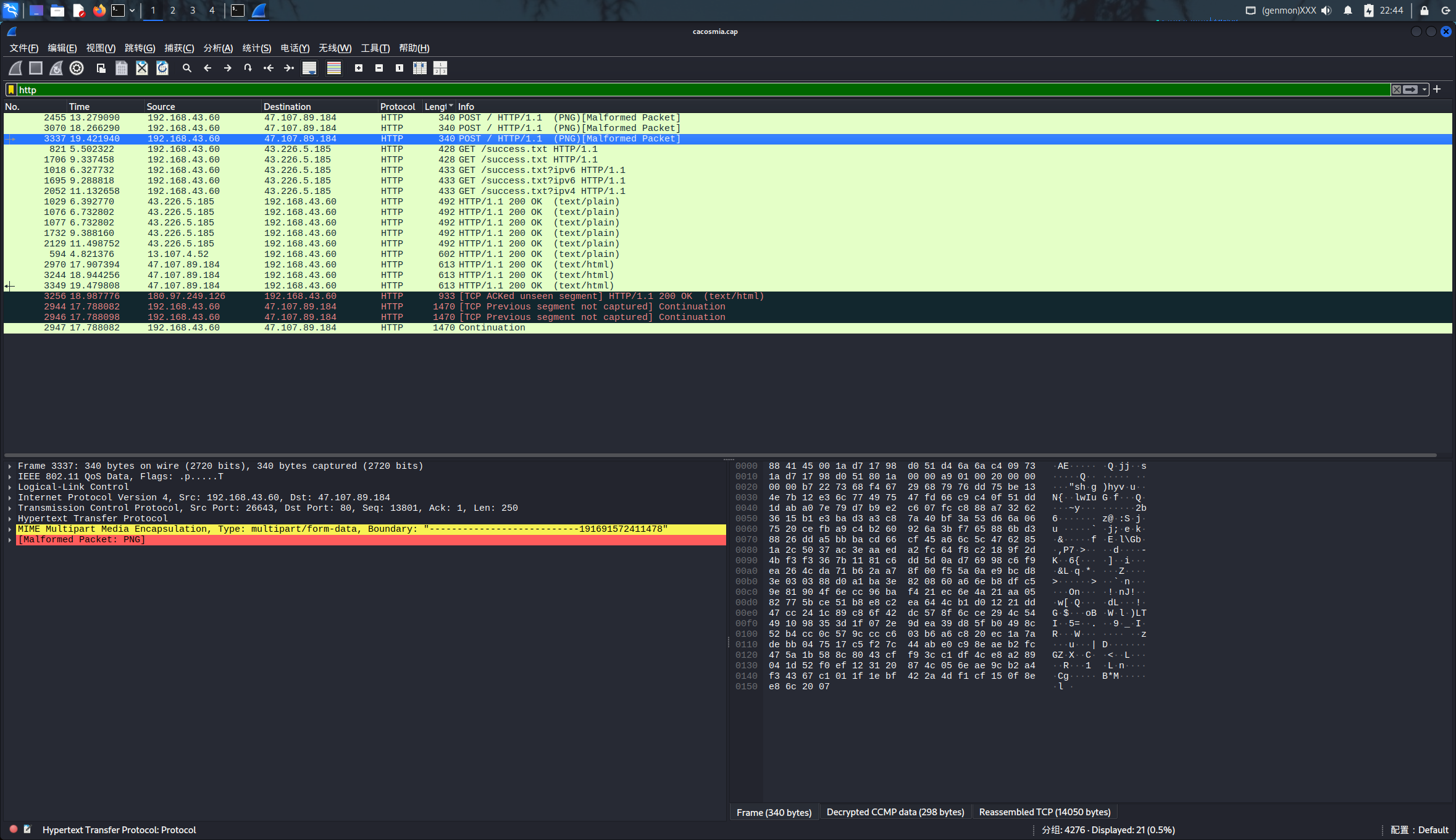 cacosmia.cap 是捕获的无线流量数据包文件,里面包含了目标 Wi-Fi 的 WPA 握手包(文章中提到捕获到 1 个握手包)。