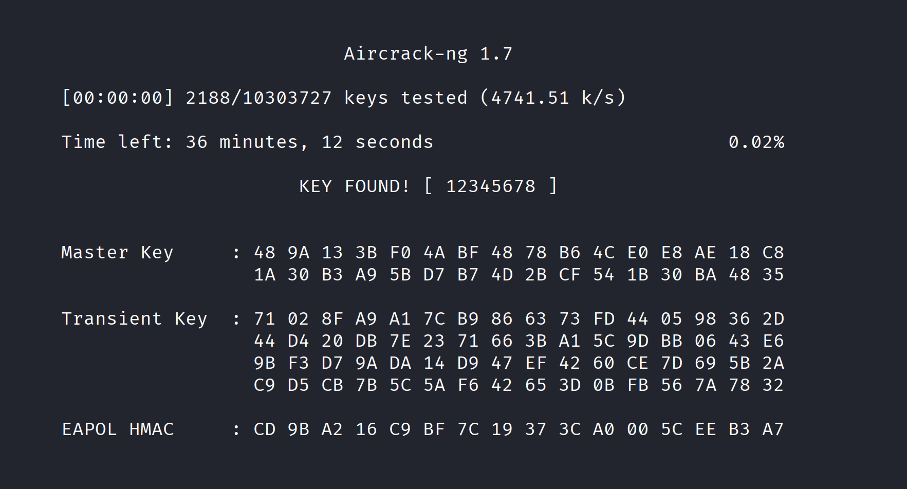 aircrack-ng cacosmia.cap -w /usr/share/wordlists/rockyou.txt