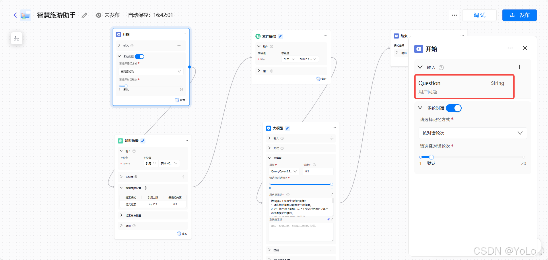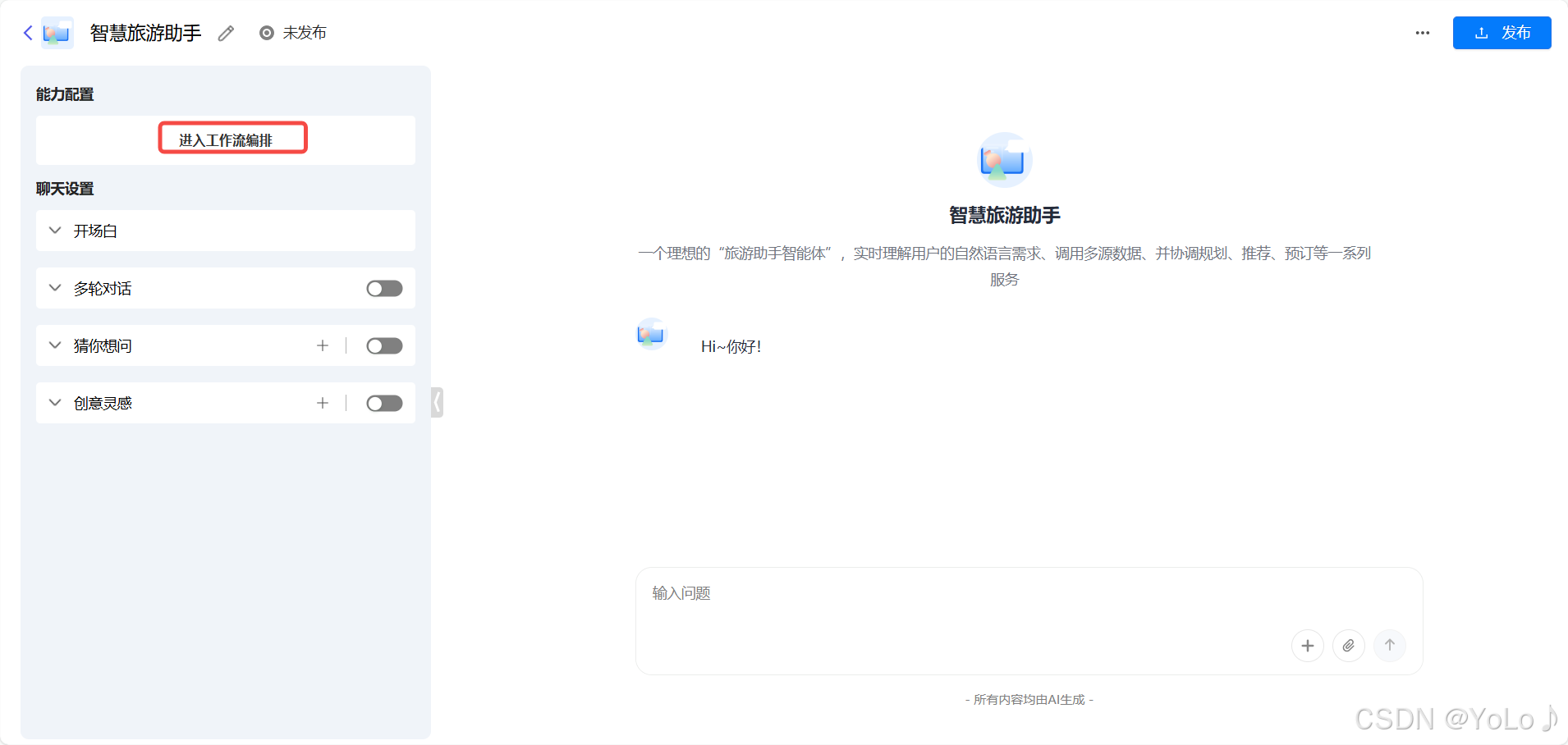 小结一下,我们大致按照以下步骤成功构建了智慧旅游智能体: