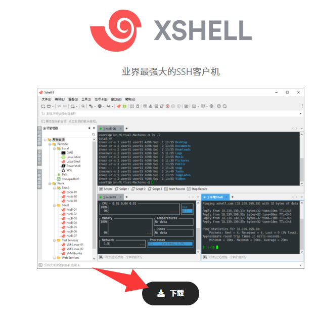 去下载一个xshell远程连接软件,下载免费版的就行。这个软件的假网站太多了,很多人找不到官网下载地址,我直接贴出来:https://www.xshell.com/zh/free-for-home-school/