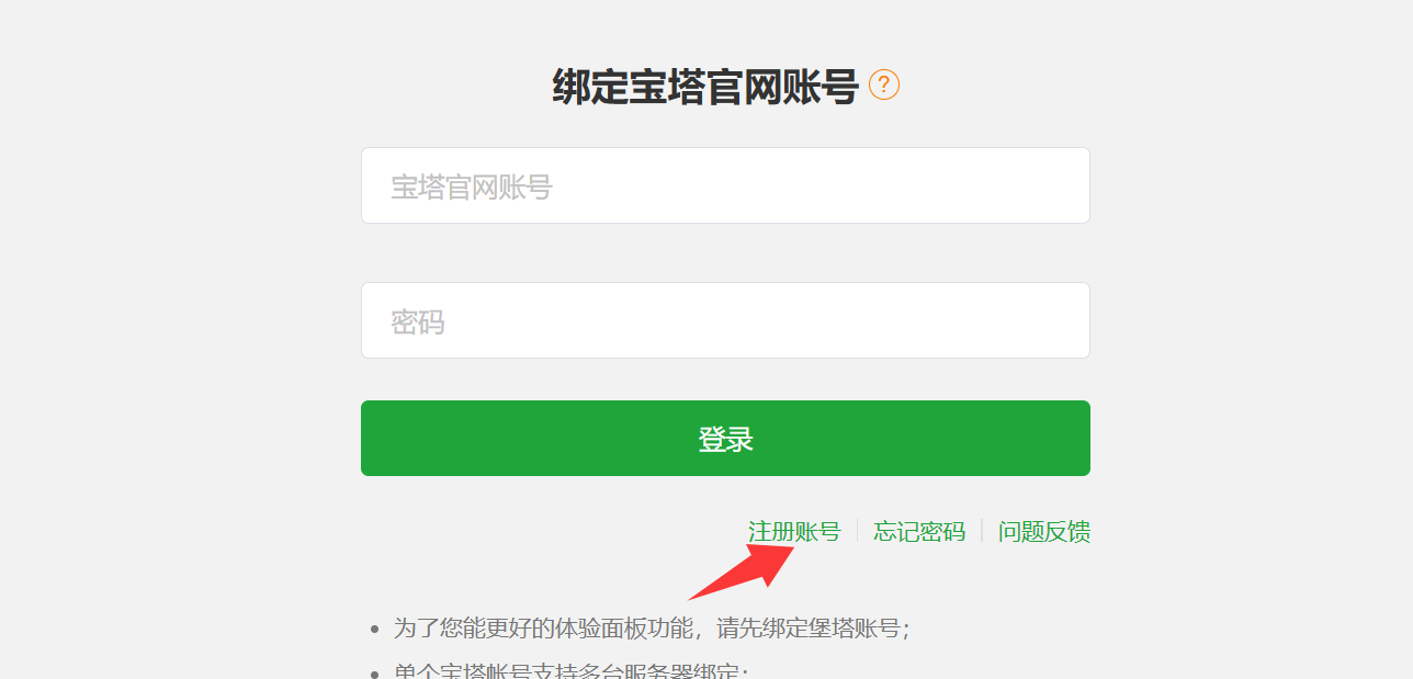 进去后,注册一个宝塔面板账号,这个账号就会自动绑定当前的服务器。如果之前已经注册了,直接登录就行。