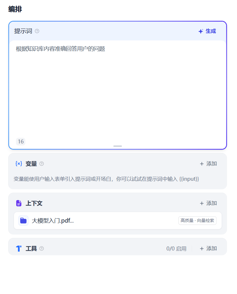 进入AI Agent画面,再上下文添加已创建好的知识库。