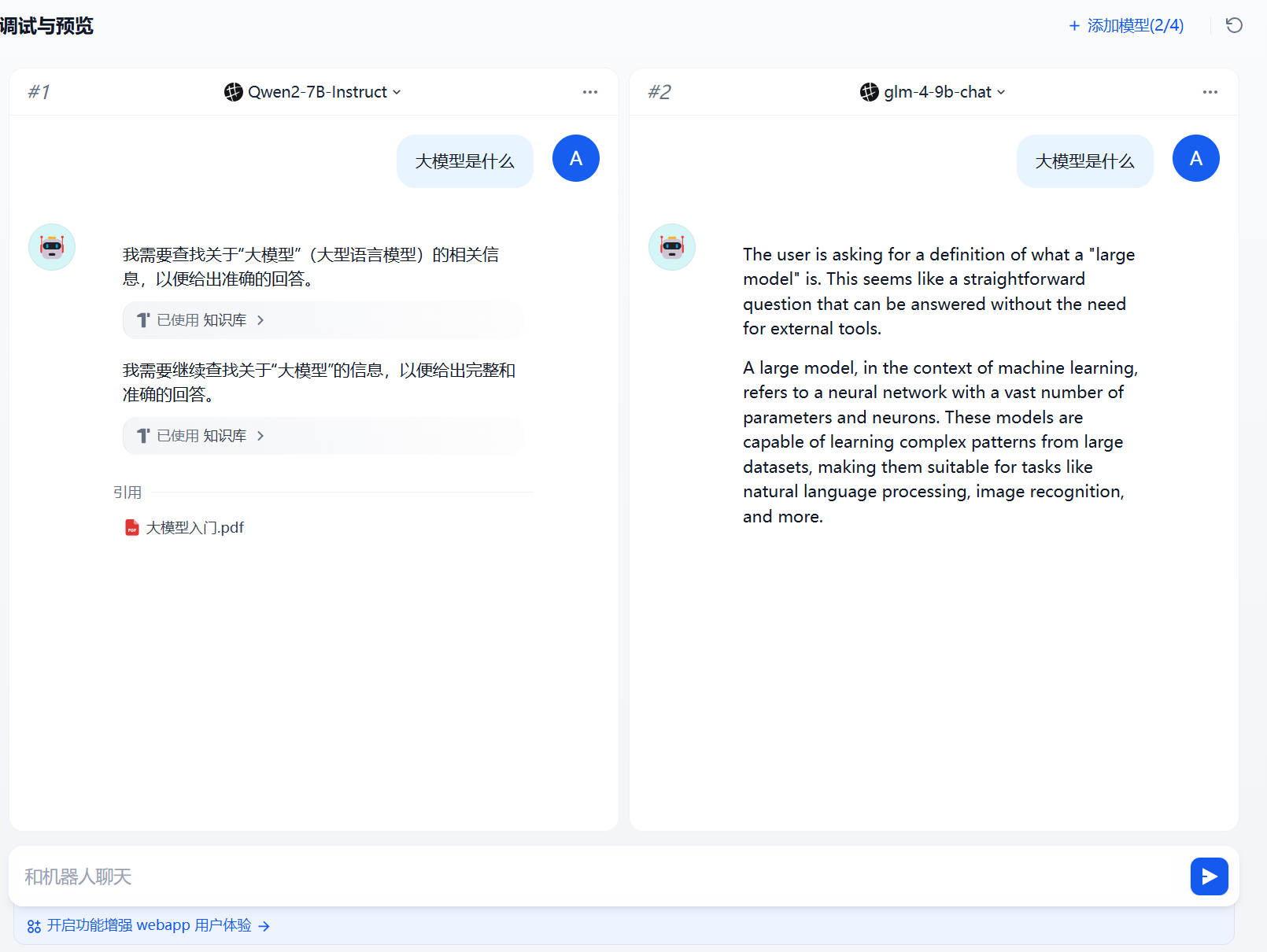 添加完成知识库我们就可以针对这个知识库进行聊天和对话了。