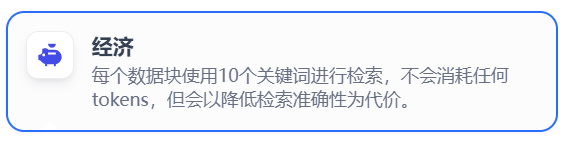 在经济模式下,每个区块内使用 10 个关键词进行检索,降低了准确度但无需产生费用。对于检索到的区块,仅提供倒排索引方式选择最相关的区块。
