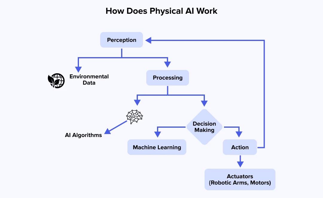 :指具备感知、理解并能在现实世界执行复杂操作的技术,通过传感器、运动控制模块实现物理世界中的“感知-决策-执行”闭环。。