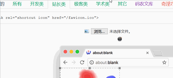4、替换小绿叶图标-方式2:在需要替换图标的页面中使用如下标签进行指定,href 指向图标地址,此时图标格式可以是 .ico 以外的普通图片格式,如 .png、.jpg、.gif 等等,名称也可以自己随意指定: