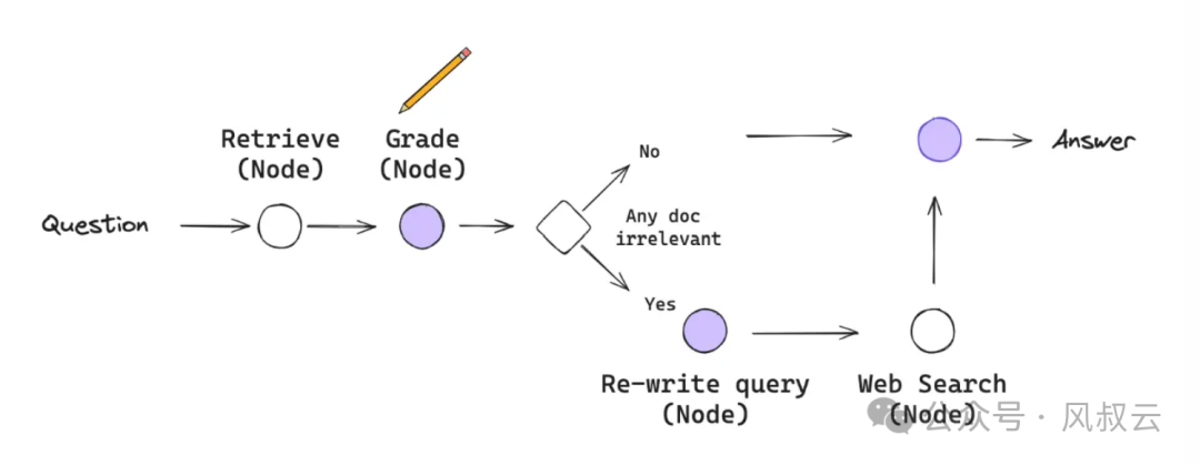 如果所有检索到的文档的置信度分数均低于阈值,则假定检索“不正确”。这会触发采取新的知识来源(例如网络搜索)的行动,以实现生成的质量。