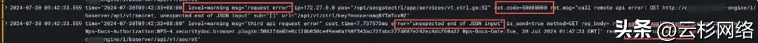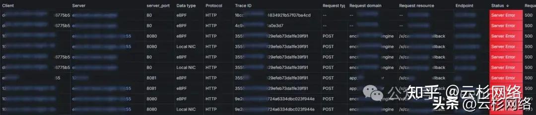 理论上,这个问题本应通过对 ERROR 日志的监控报警来发现。但在引入 DeepFlow 之前,我们未能检测到这一问题,原因在于二开引擎服务的日志不规范。具体表现为,将 500 错误的日志级别记录为 warning,而业务层的 status_code 则错误地记录为 200。因此,未能及时触发预期的错误报警。