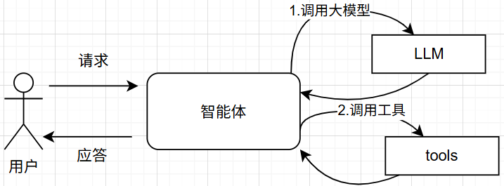 上下文工程以正确的格式提供正确的信息和工具给智能体,从而使之能够正确完成任务。一个智能体的典型工作流程总是先调用大模型,再根据大模型调用返回结果调用工具,再调用大模型……,如此多次往复,直到大模型决定结束循环并给用户返回应答,如下图所示: