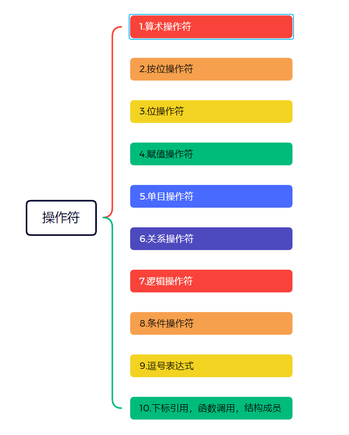 4)赋值操作符: = 、+= 、 -= 、 *= 、 /= 、%= 、<<= 、>>= 、&= 、|= 、^=