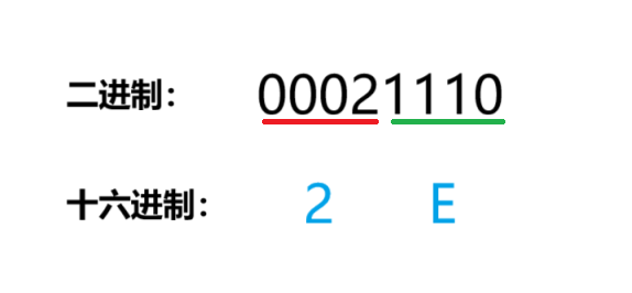 开始配凑,采用4-4,假设是0002 1110,则十六进制为0x2E(加0x区分十进制):
