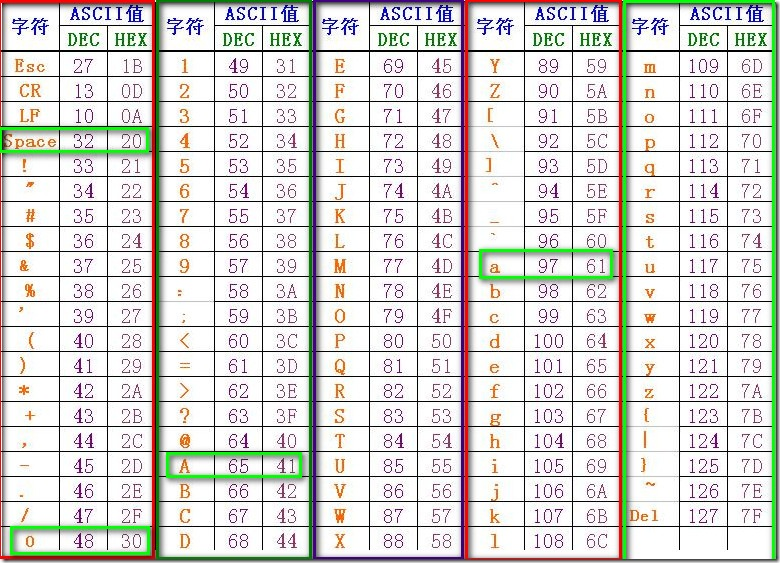 注意:这些都是通过ASCII值来让计算机识别的。DEC是十进制,而HEX是十六进制。如下图