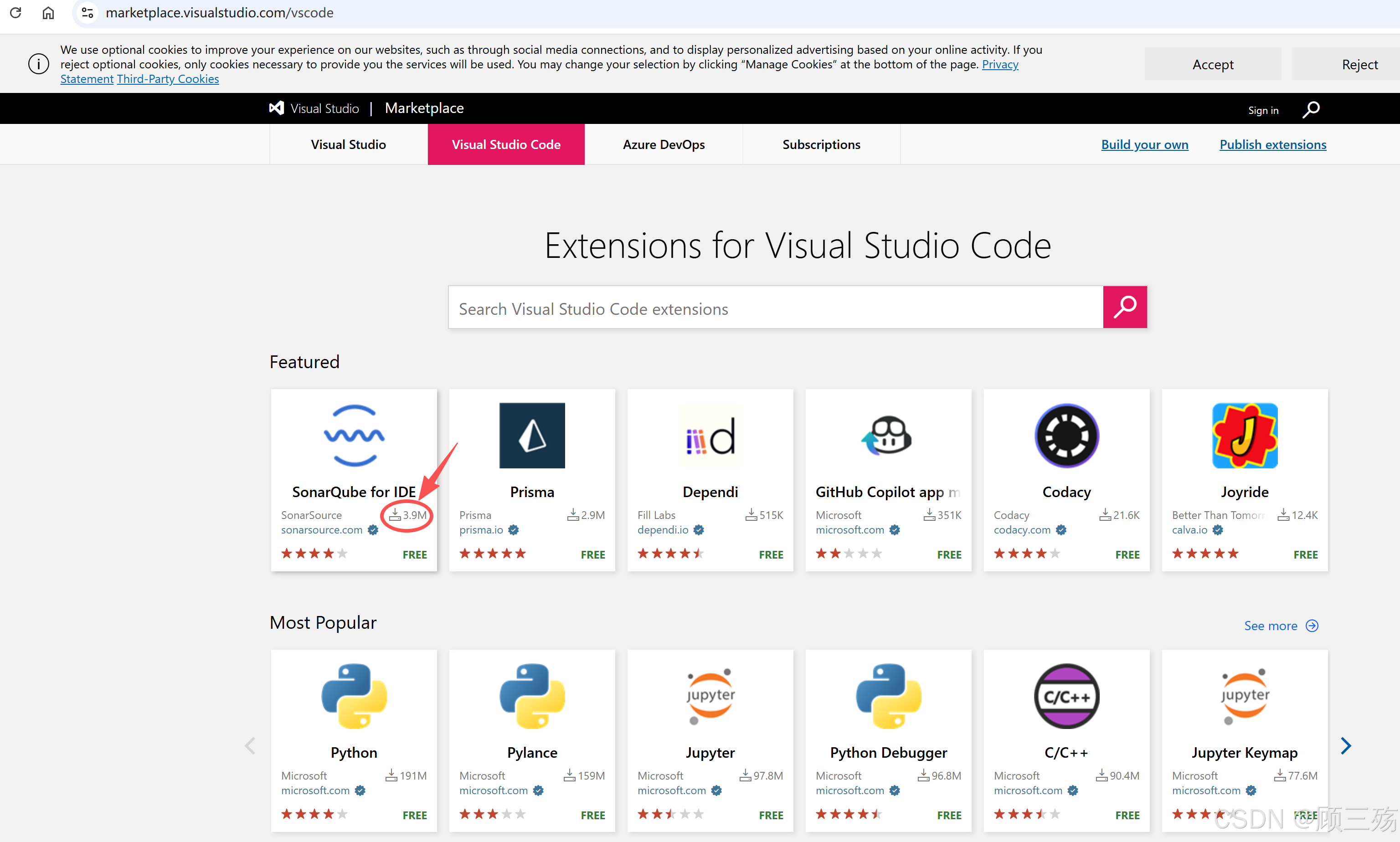 1. itemName:URL Query 中的 itemName 字段,如截图中的 SonarSource.sonarlint-vscode,并将小数点(.)前后的内容分成以下两个字段: