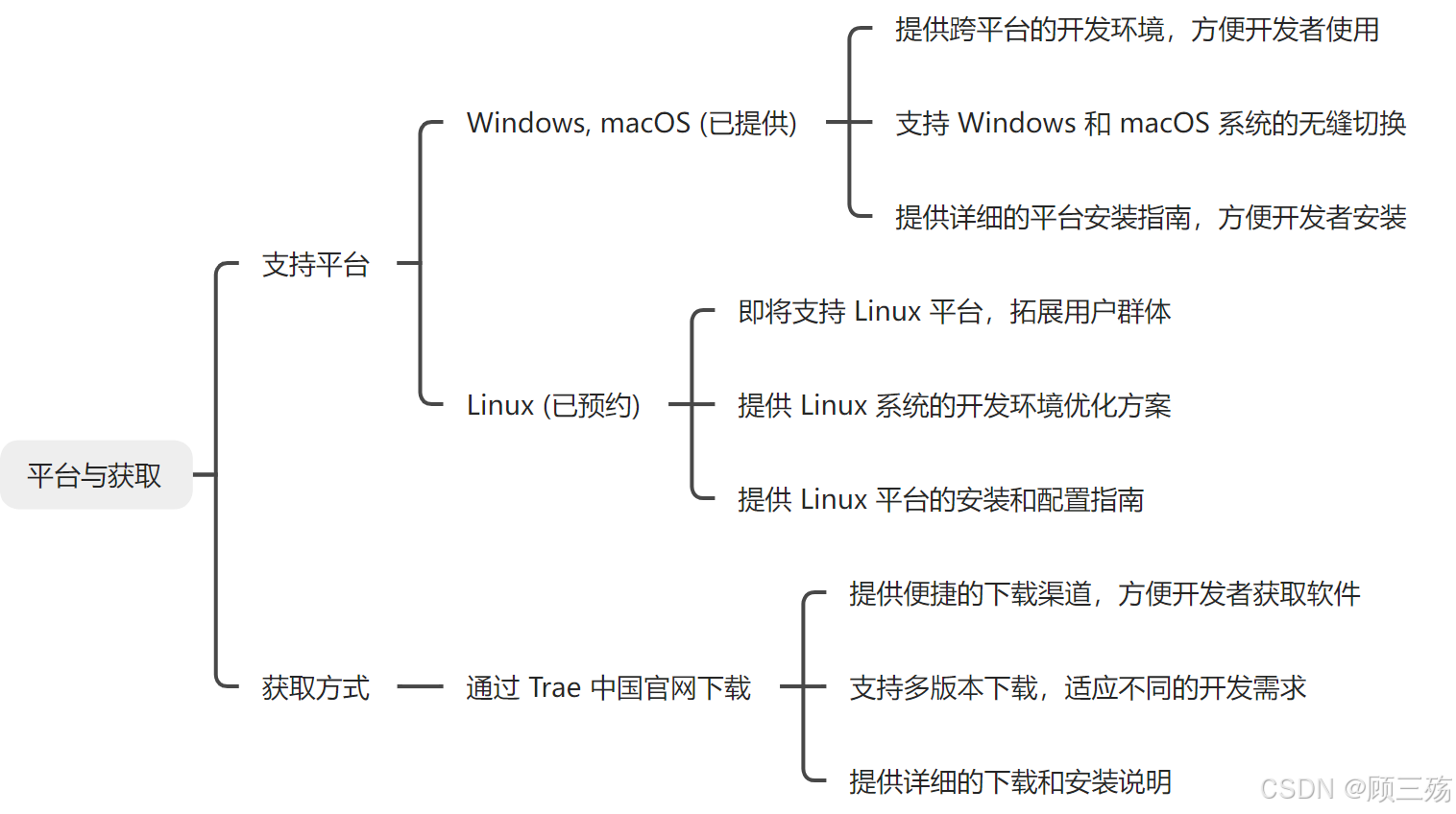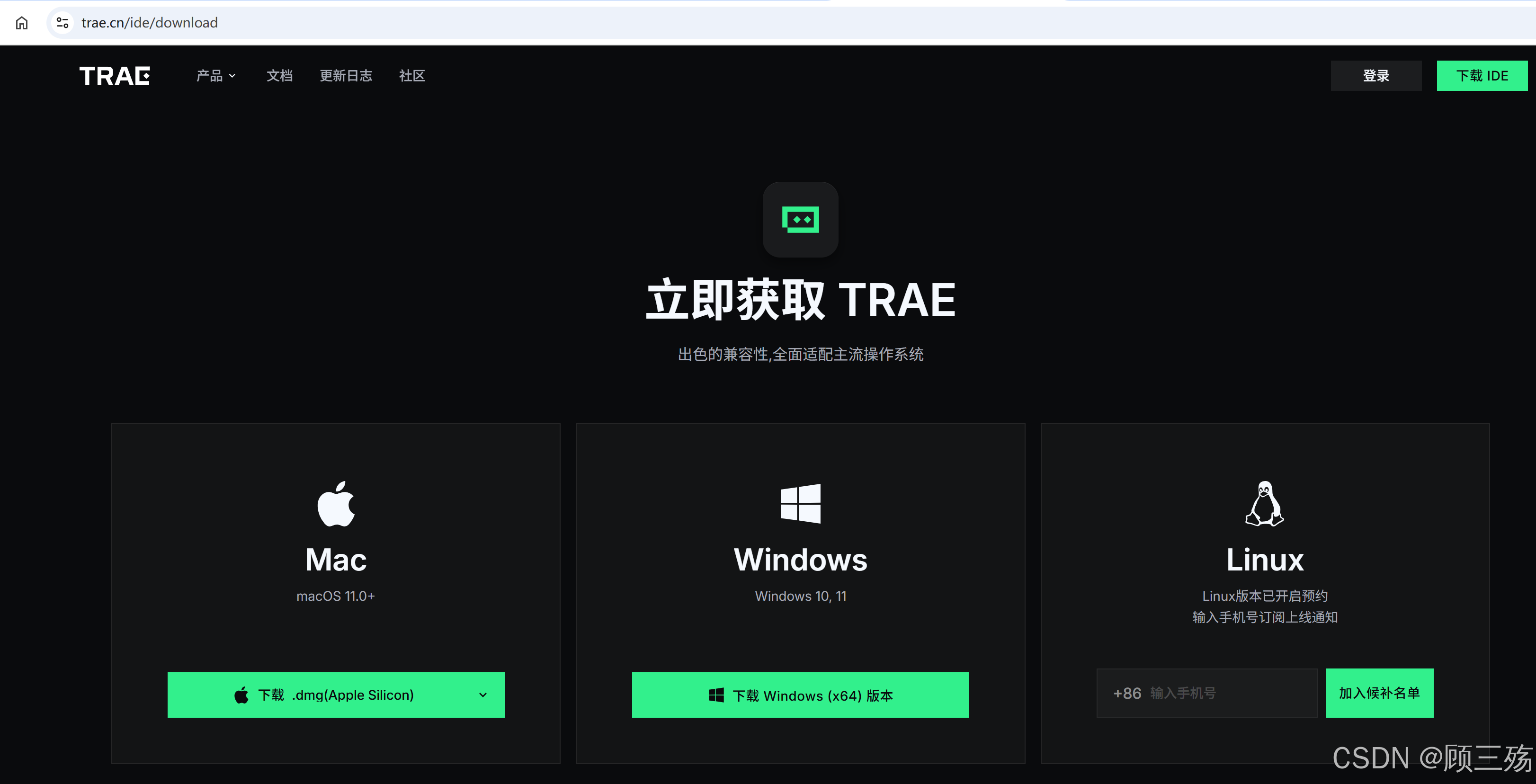 多平台与获取方式:TRAE 提供 Windows 和 macOS 版本下载,Linux 版本也已开启预约,可以通过访问 Trae 中国官网下载体验。
