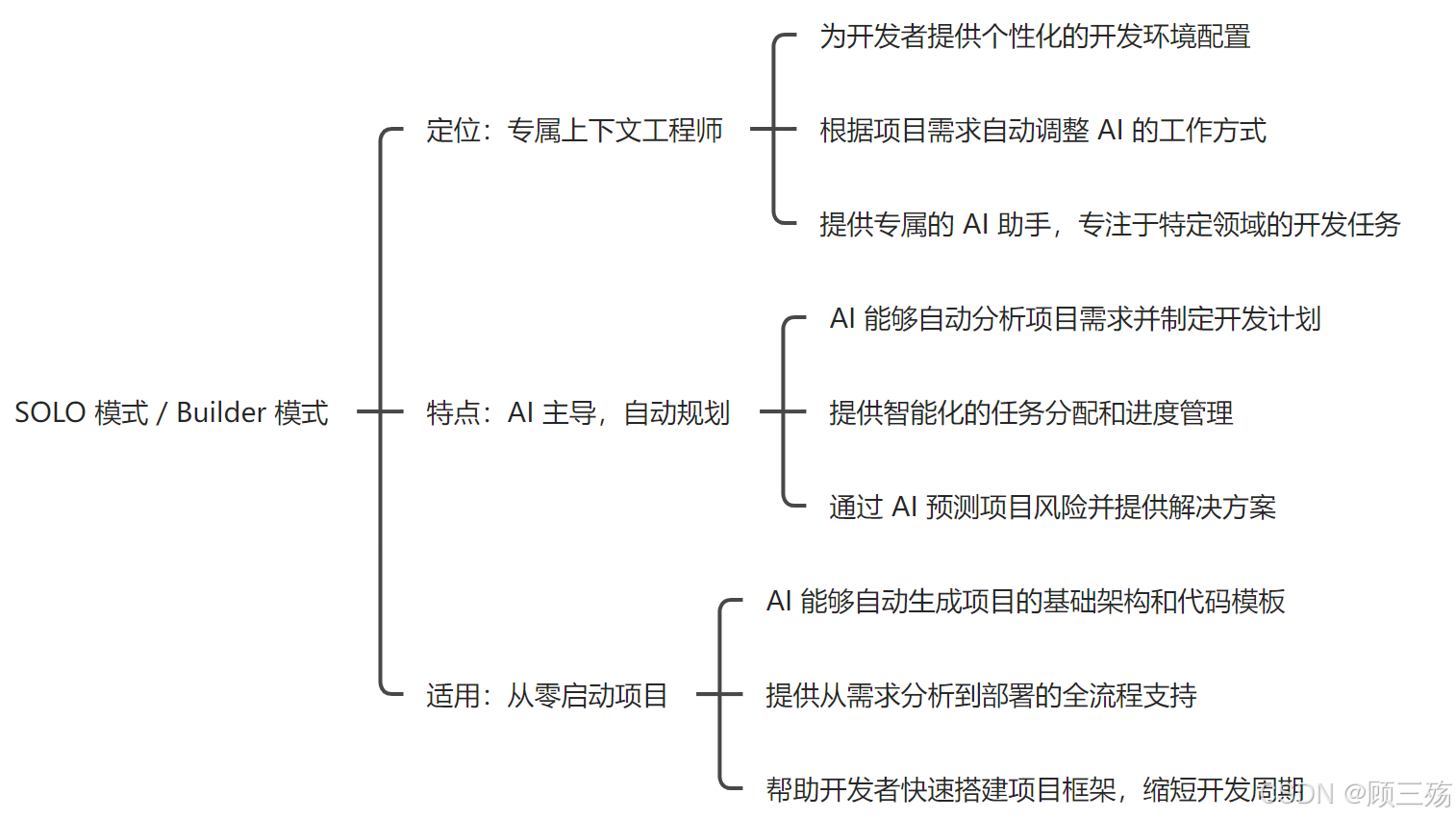 SOLO 模式是 TRAE 的核心突破,它基于 “上下文工程” 理念,使 AI 能够主动感知需求、拆解任务、调度工具并交付完整的软件成果。