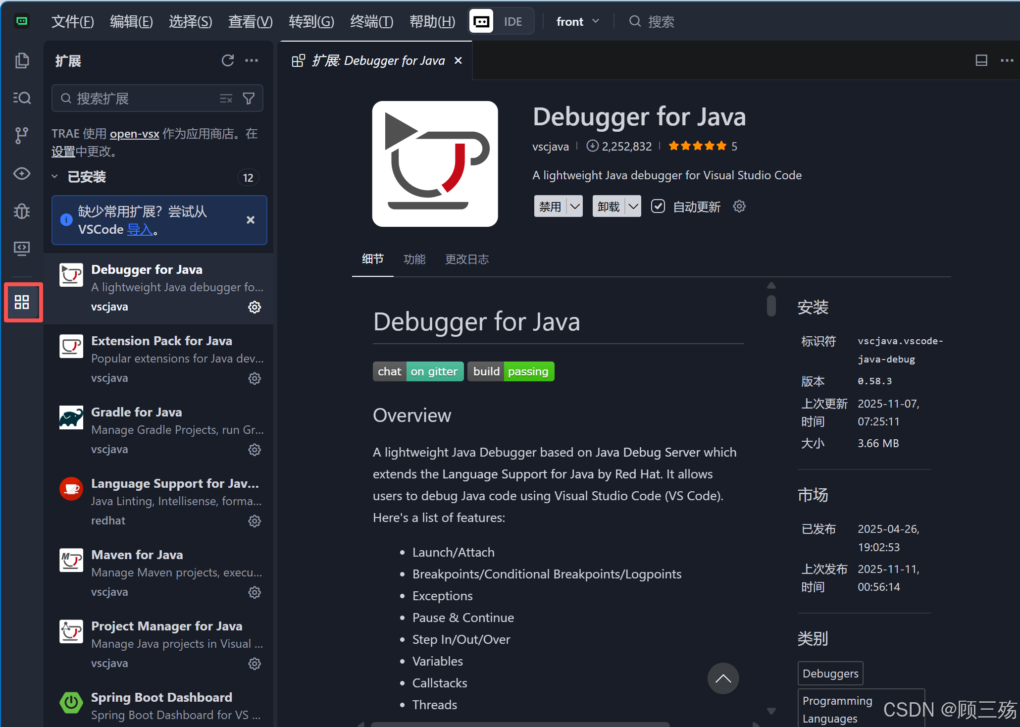 - 下载完成后,返回 TRAE 并打开插件市场。
