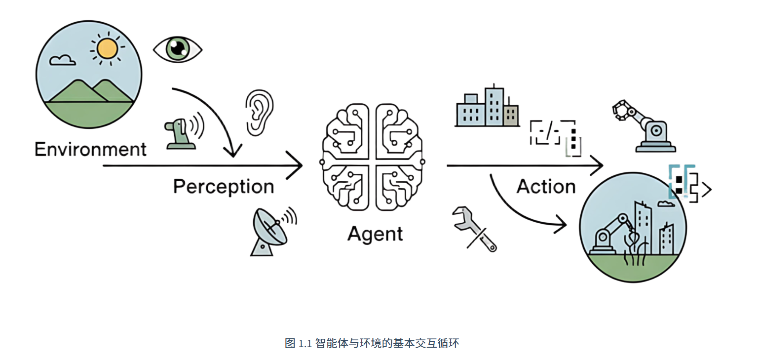 智能体被定义为任何能够通过传感器(Sensors)感知其所处环境(Environment),并自主地通过执行器(Actuators)采取行动(Action)以达成特定目标的实体。