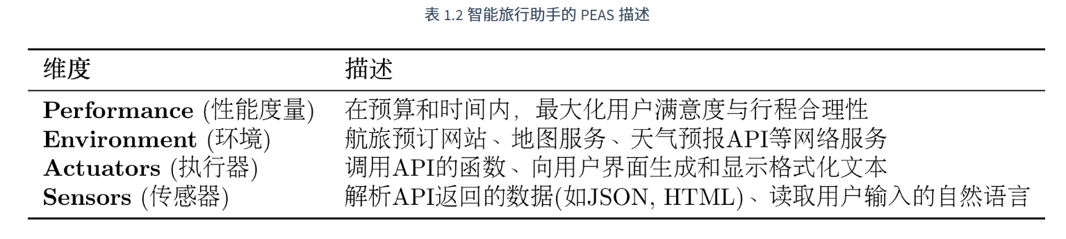 要理解智能体的运作,我们必须先理解它所处的任务环境。在人工智能领域,通常使用PEAS 模型来精确描述一个任务环境,即分析其性能度量(Performance)、环境(Environment)、执行器(Actuators)和传感器(Sensors) 。